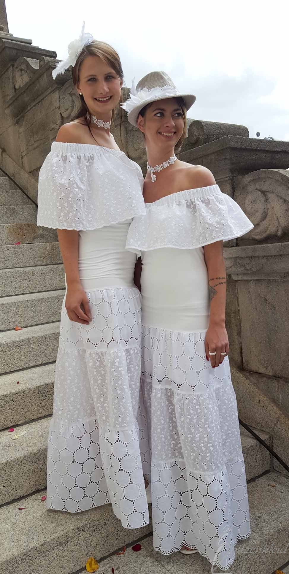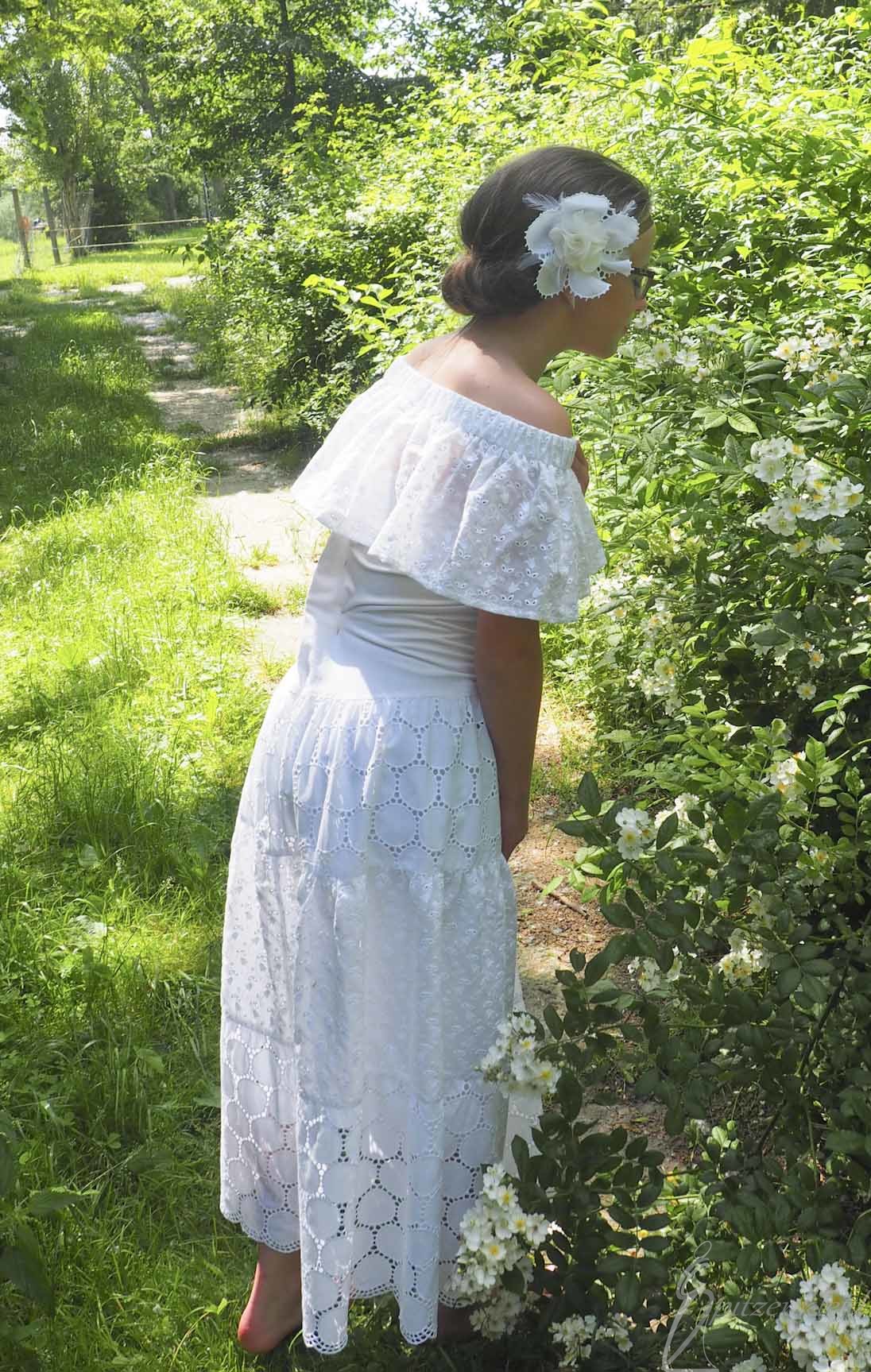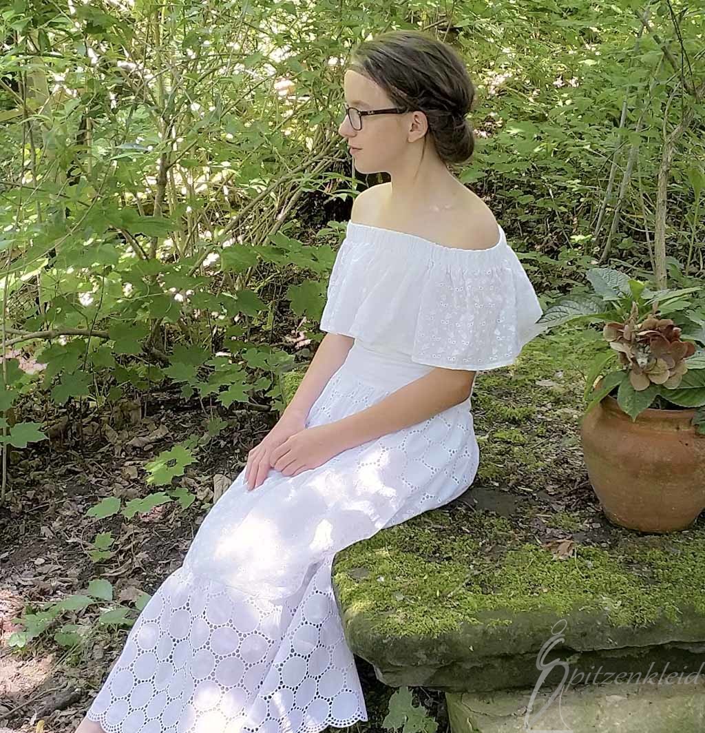 Sommerkleid im Carmenstil mit Plauener Stickerei